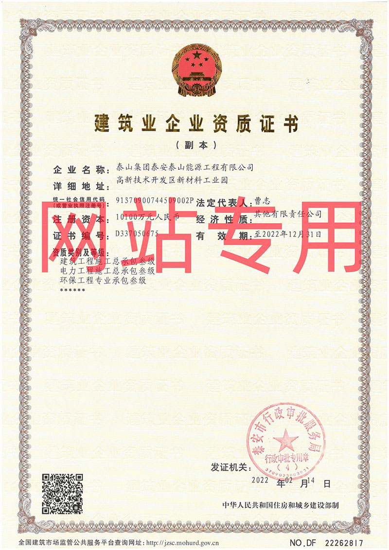建筑工程施工總承包叁級(jí)、電力工程施工總承包叁級(jí)、環(huán)保工程專業(yè)承包叁級(jí)